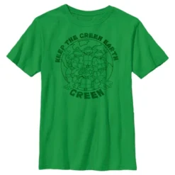 - Strut your stuff with this stylish new Earth Day boys’ t-shirt that is perfect for heading out into the wilderness! Featuring Donatello, Leonardo, Michelangelo, and Raphael with the phrase: “Keep the green earth green,” across the front.