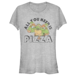 - Strut your stuff with this stylish new juniors’ t-shirt that is perfect for every occasion! Featuring Raphael happily posing with his favorite food while framed by the phrase: “All you need is pizza.”