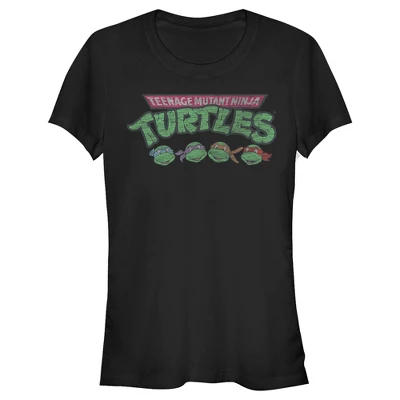 - Strut your stuff with this stylish new juniors’ t-shirt that is perfect for every occasion! Featuring the classic Teenage Mutant Ninja Turtles logo above the smiling faces of Donatello, Michelangelo, Raphael, and Leonardo printed in distressed style across the front.