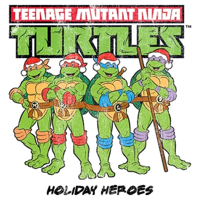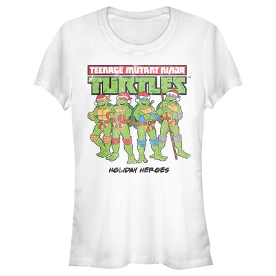 - Strut your stuff with this stylish new Christmas juniors’ t-shirt that is perfect for the holidays! Featuring a distressed graphic of Donatello, Raphael, Michelangelo, and Leonardo wearing Santa hats, the classic franchise logo, and “Holiday heroes” printed in distressed black letters below.