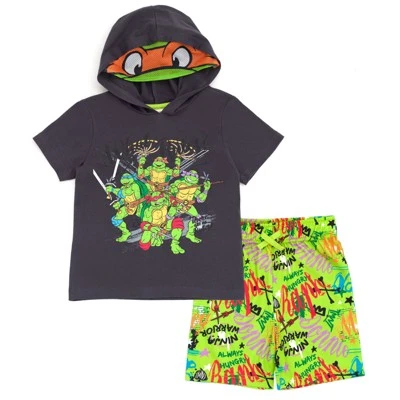 Don your shell and get your child ready for the action-packed adventure of a lifetime with this Teenage Mutant Ninja Turtles Short Sleeve T-Shirt & Shorts! Leo, Raph, Mike and Donnie need your little one’s help to save New York City. Join the brothers as they learn the art of ninjutsu and being a shadow warrior from their sensei, Master Splinter. Watch as these cartoon characters’ power and stealth comes to life through your child in this TMNT outfit. Your little one will love this short sleeve graphic tee shirt and cute and stylish shorts featuring their favorite comic book ninjas.