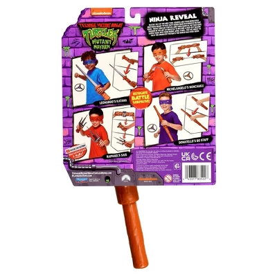 Transform yourself into the “Brainiac” Donatello from the hit Teenage Mutant Ninja Turtles Mutant Mayhem movie with Donatello’s Ninja Reveal Role Play set! Tie on Donnie’s violet purple bandana, grab his powerful Ninja Reveal Bo Staff and throwing star and, in an instant, you’ve become Donatello! When the baddies attack, unleash the power of Donnie’s bo staff by pressing the button and flicking your wrist—the bo staff extends and is ready for battle! When the battle’s won, simply slide staff back into the handle and you’re ready for the next fight!