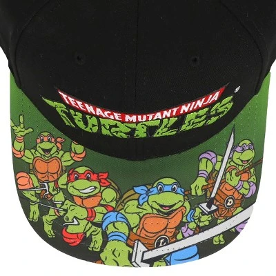 - CUSTOM DESIGN: An image of Raphael, Donatello, Michelangelo, and Leonardo decorates the curved bill on this snapback hat while the series logo appears on the crown. Teenage Mutant Ninja Turtles fans will love this fun design.