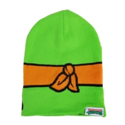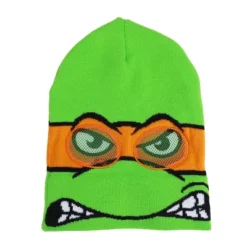 - Michelangelo Inspired Design: The front of this beanie features a mesh eye design inspired by Michelangelo’s iconic orange eye mask. Pay tribute to the free-spirited and pizza-loving turtle from the TMNT universe.